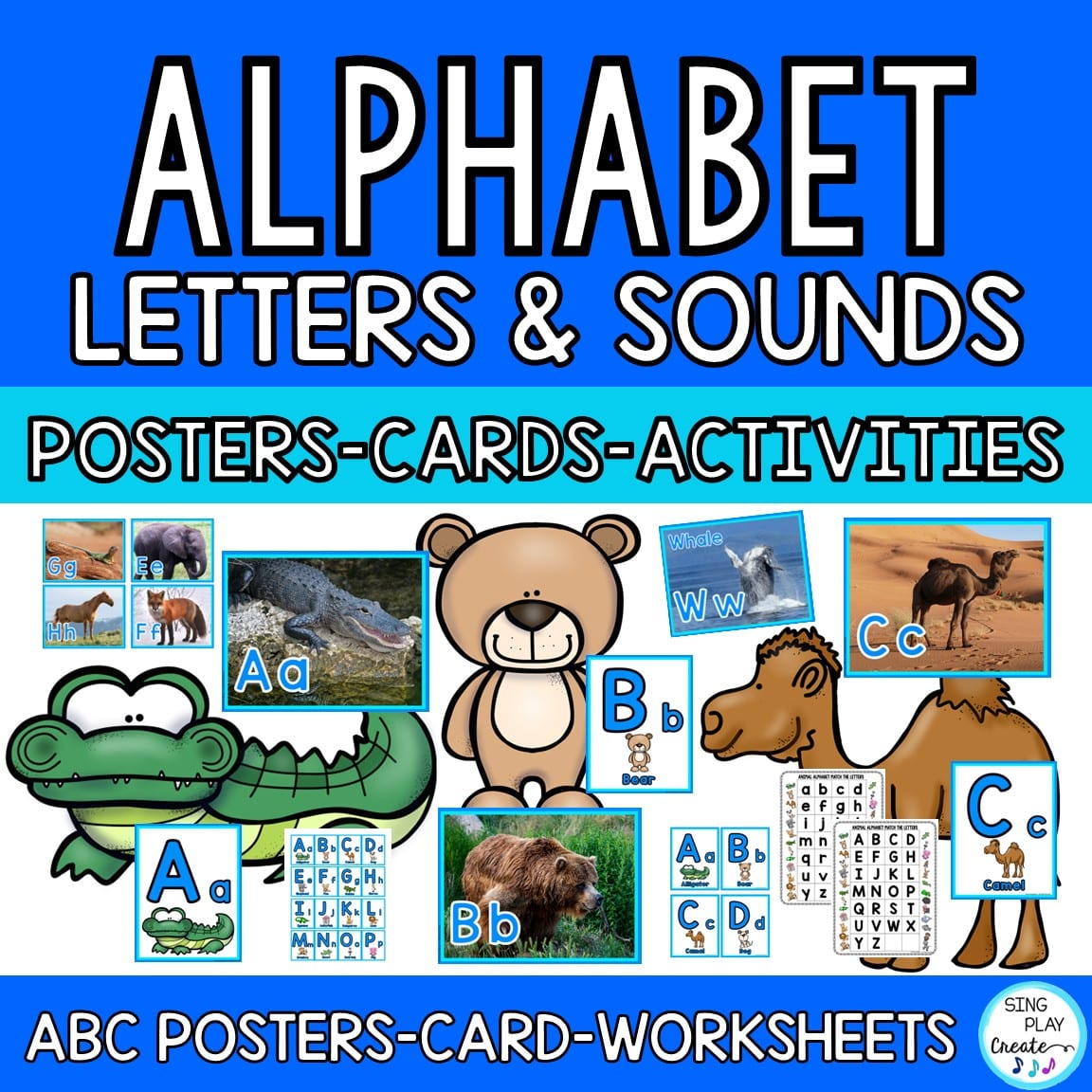 Animal alphabet letter and sound song and activities to help your students learn their ABC letters and phonics sounds. Your students will love these Animal ABC letters and sounds interactive activities. Create word walls with the posters, interactive centers using the games and activities and reference cards with the flashcards. Interactive and Engaging your students will have so much fun learning the animal names, letters and sounds. One set of the posters uses real images-which students will love. What a great addition to your alphabet learning activities.