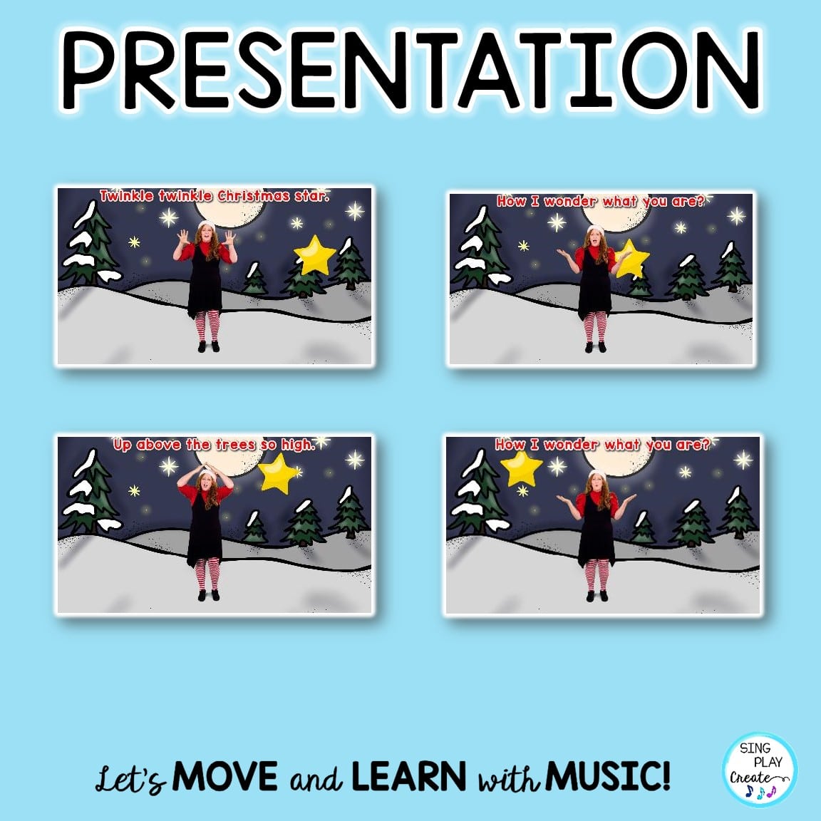 Help your students sing and move through the month of December. Whether using this action song as a brain break, music activity or for a Christmas and Holiday program, your students will love singing and moving to “Twinkle, Twinkle Christmas Star”.