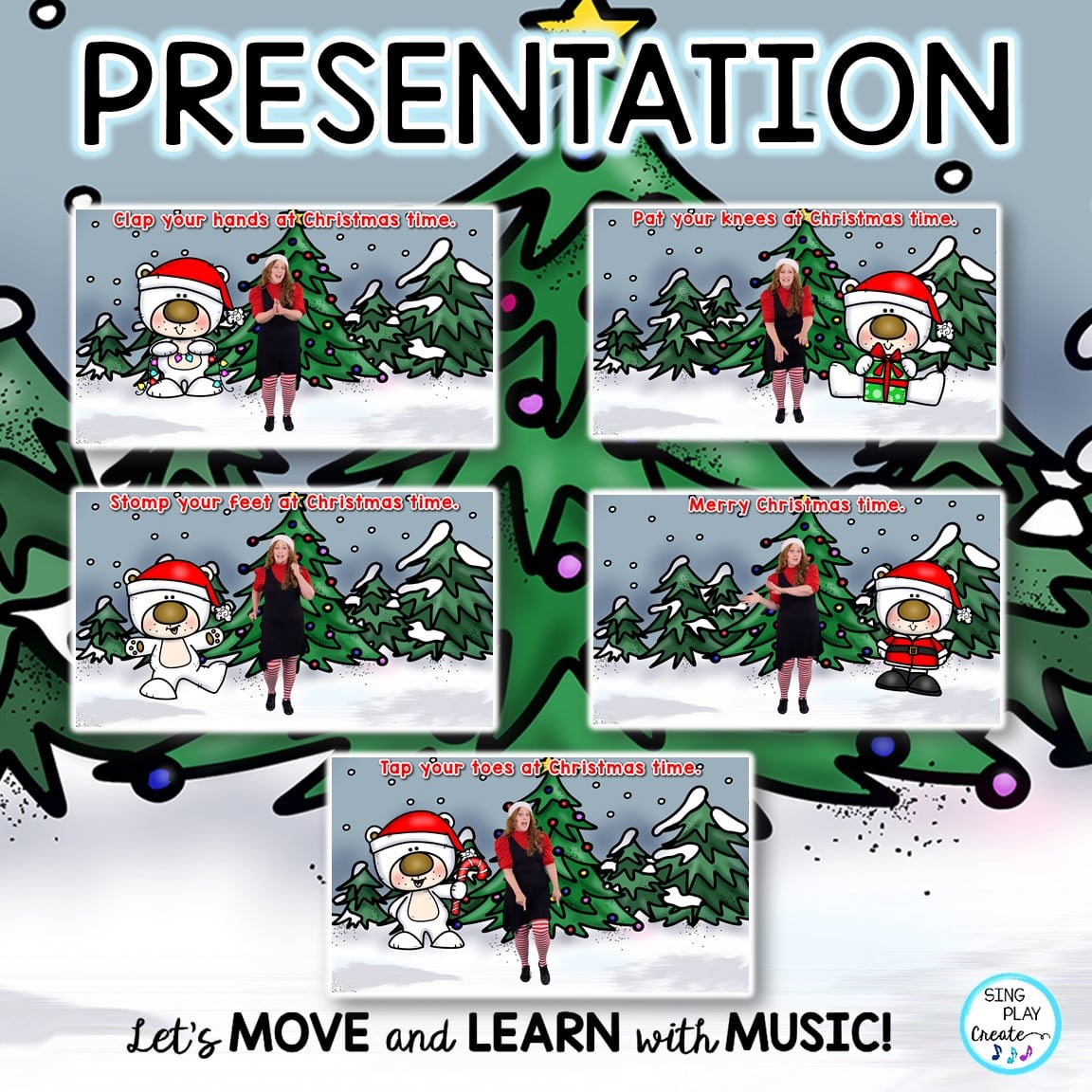 Get ready to clap, stomp, pat your knees in this holiday action song “Merry Christmas Time”. Your students will love the Christmas season characters and want to move and sing all the way through December. Whether using this action song as a brain break, music activity or for a Christmas and Holiday program, your students will love singing and moving to “Merry Christmas Time”.