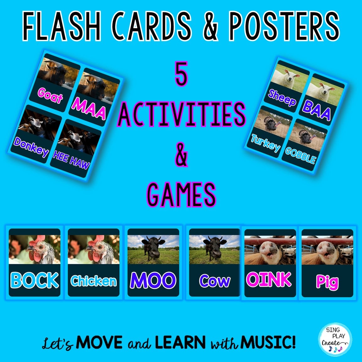 Hee-haw! Let’s learn farm animals and their sounds with this fun Action song “What Do the Farm Animals Say?” Your students will have so much fun “moo-ing”, “maa-ing” and “neighing” around your classroom. The games are BRAIN BREAKS you can use throughout the school year. A wonderful song to sing during your FARM UNITS as a morning meeting or Brain Break activity.