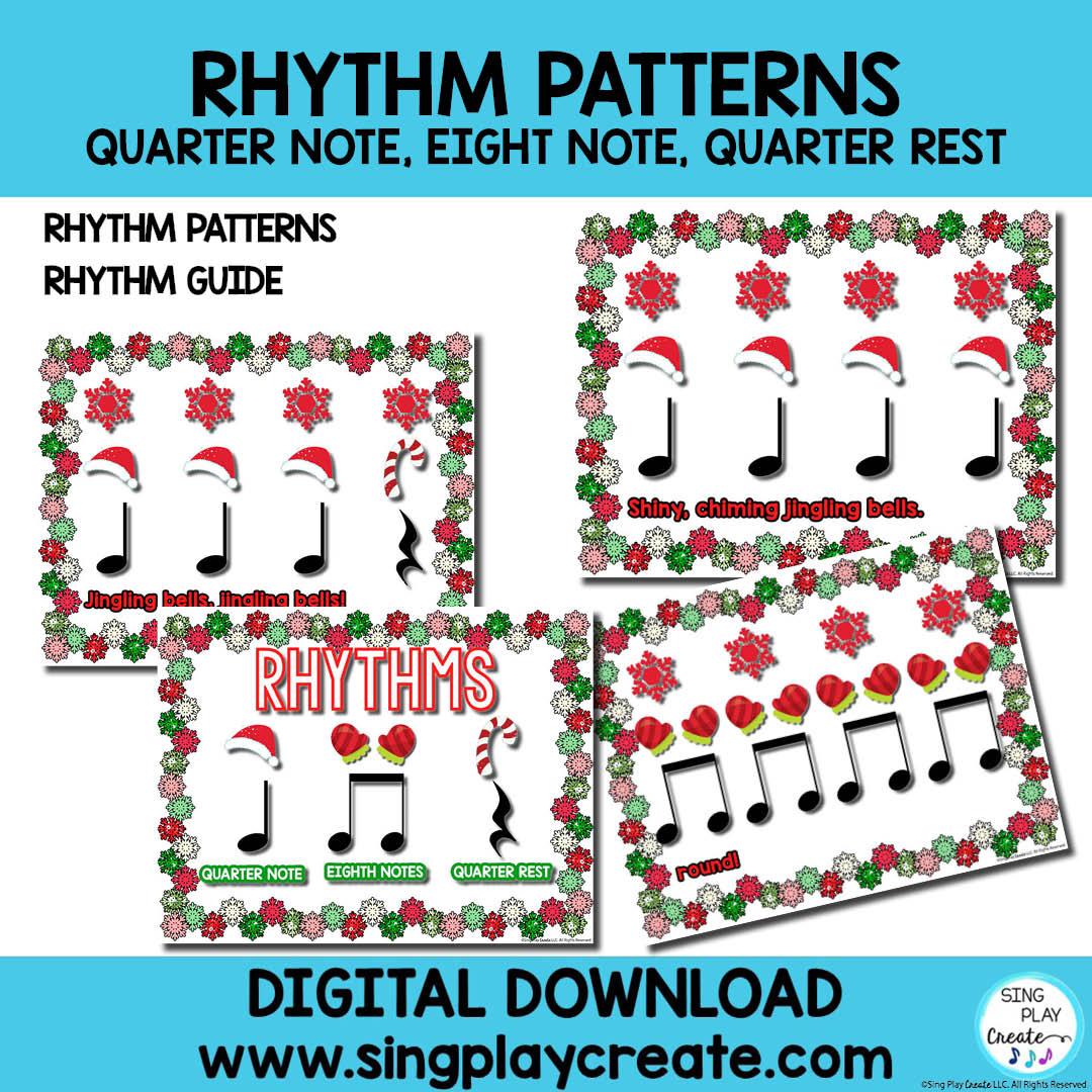 Holiday Instrument Play Along Song: “Jingling Bells” is a rhythm Music Activity for Bells, Glockenspiel, Xylophone is a fun instrument play along activity for young children. Sing the song, play the rhythms, sing and play together in this fun “bells” play along music activity. Sing and play “Jingling Bells” any time of year! A fun activity to introduce playing bells in music class. And, expand playing skills using a glockenspiel or xylophone to play the rhythm patterns. So many ways to use this engaging set of materials. Best for PreK-2nd grade.