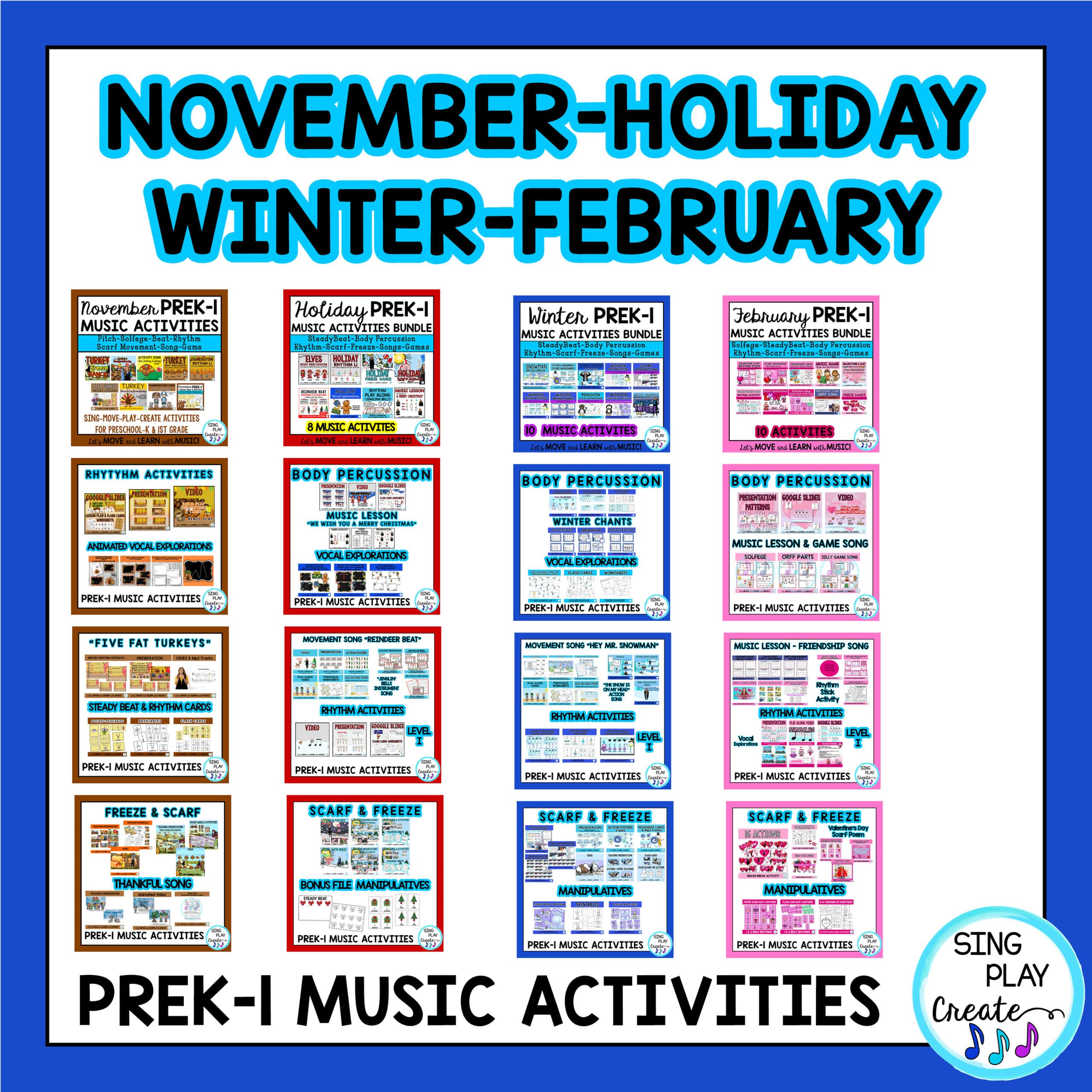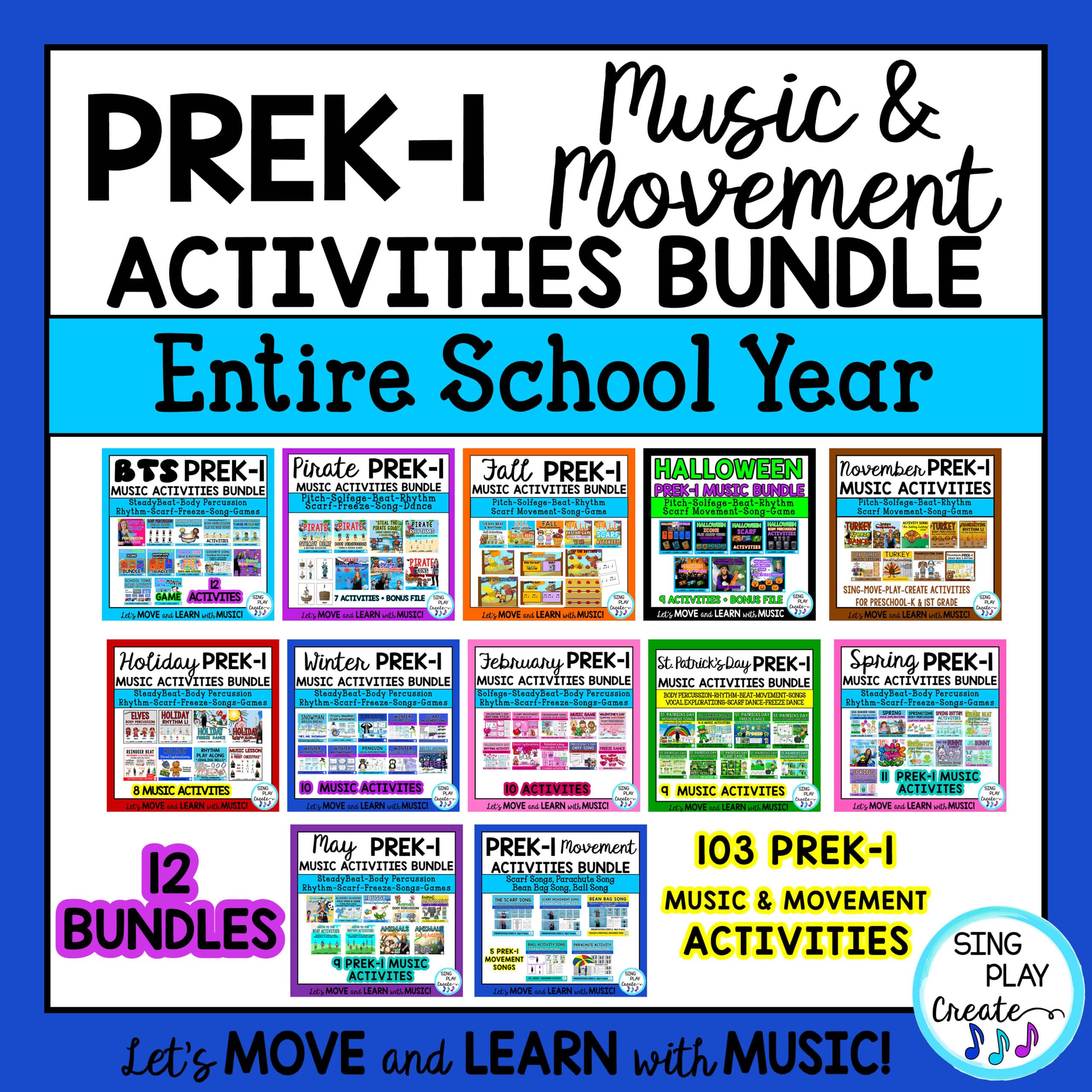 Preschool, K-1 Music Lesson and Movement Activity Bundle: Entire Year